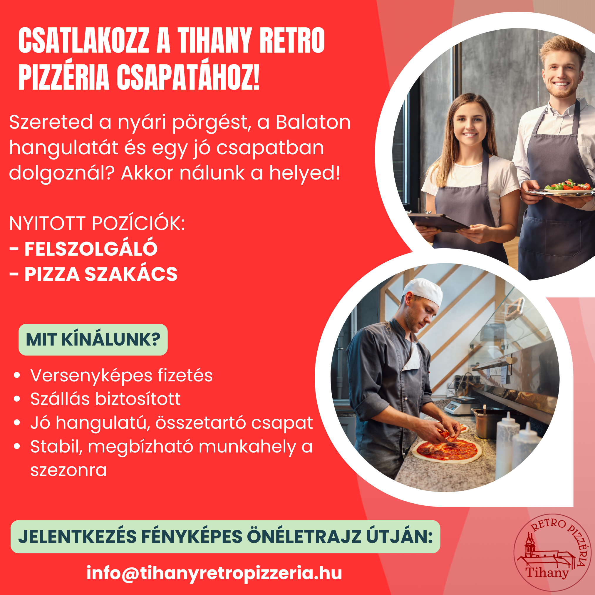 🔥 CSATLAKOZZ A TIHANY RETRO PIZZÉRIA CSAPATÁHOZ! 🔥